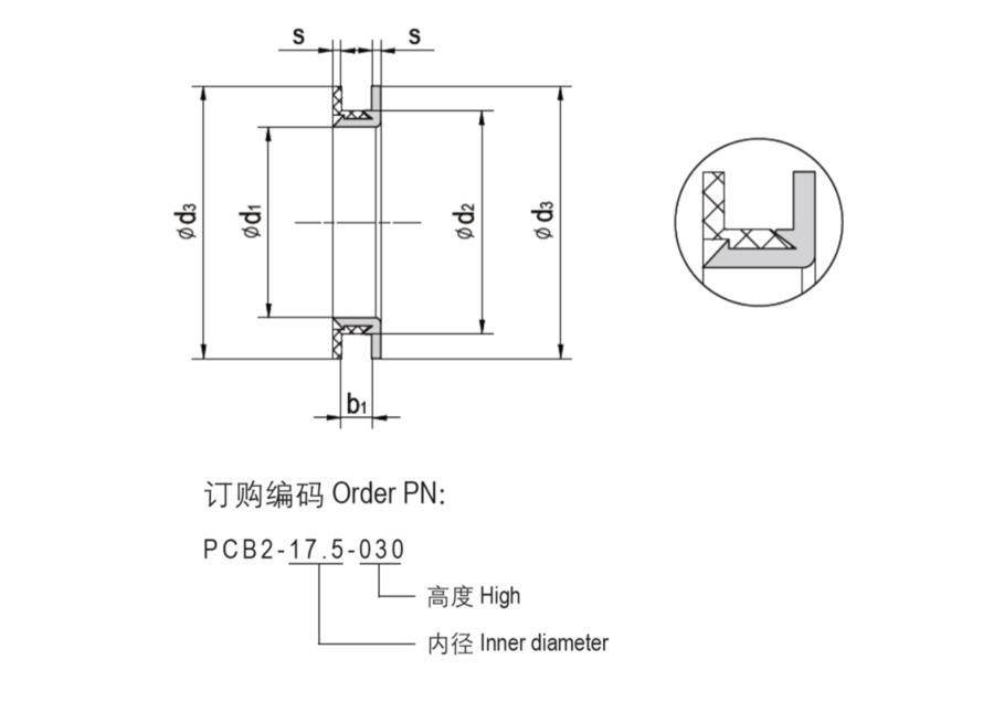CSB-PCB® Plastic clip bearing is designed with double flange to protect the shaft mounted through metal housings. The double flange and slipped gap ensures easy assembly of the bearings. The double flange design can also protect the bearing from moving out of the housing.